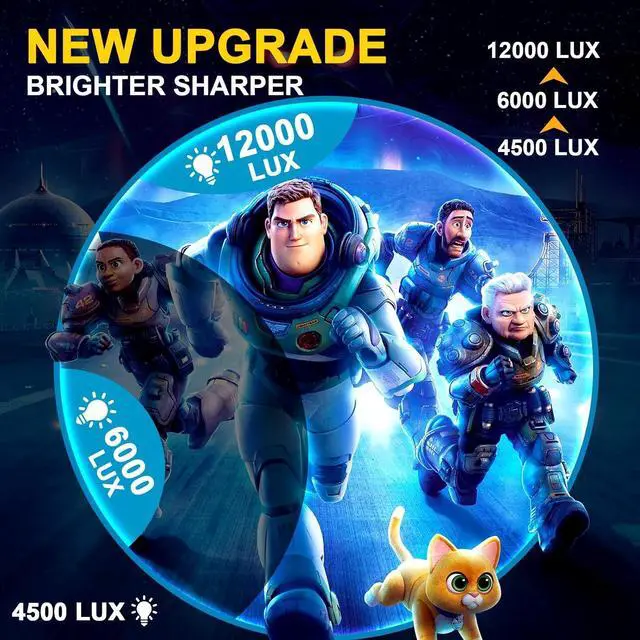2025 UPGRADE BRIGHTER AND CLEARERUpgrade from 4500 lumens to 12000 lumens Light source brightness, with real color 16777K. JIMTAB home projectors provide you with more stunning images and videos, and M18 Upgraded can restore more realistic color images.