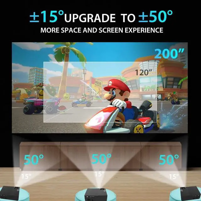 CONVENIENT UPGRADE, LOW POWER CONSUMPTIONWe have upgraded the electronic keystone correction function. Upgrade from manual ±15° to electronic ±50°. Manual and automatic are all allowed.JIMTAB M18 Upgraded allows you to use shorter distance to project a larger screen, and it can be placed in a corner. The 145w ultra-low power consumption and needs about 50dB noise make the heat dissipation faster.