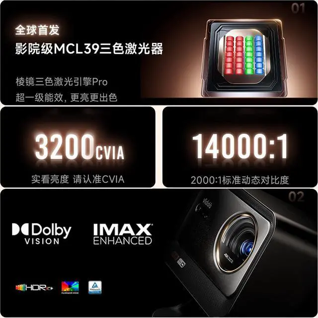 Hisense Viddà C3 Ultra Laser 4K Projector Beamer | MCL.39 Triple Color Laser 3200 CVIA Lumen | JßL Hi-Res Dolby Audio DTS HD HiFi Stereo Speaker | MT9681 8GB 128GB, WiFi 7 Bluetooth 5.4 HDMI 2.1 | Android Chinese OS with KD3 Google TV Stick