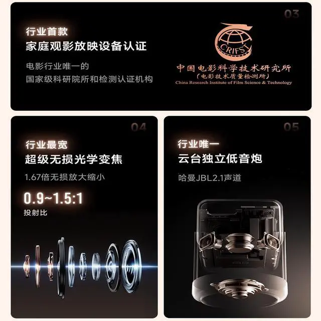 - 0.9~1.5:1 Throw Rate, Lossless project 100" screen from 2.0m ~ 3.4m distance