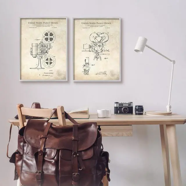Stupell Industries Vintage Movie Camera Cinema Projector Patent Diagram, Design by Karl Hronek