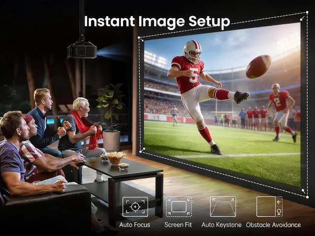 3-Second Auto Focus & Auto Obstacle Avoidance Set-Up FreeTired of manual adjustments? The advanced dual-sensor system automatically detects obstacles, corrects distortion, and achieves razor-sharp focus in 3 seconds. Place it on a table, shelf, or use it as a ceiling projectorit adapts on its own. Turn it on and enjoy instantly.