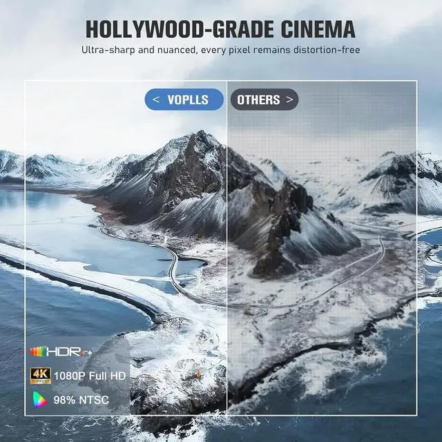 360°Portable Outdoor 4K Projector: Cinema-Quality FlexibilityExperience movie theater-quality visuals with stunning HDR10 claritydeep blacks retain texture, bright scenes maintain vibrance. Supports 4K input (displays native 1080p) ideal for backyard movie nights. Our 98% wide color coverage delivers Hollywood-grade color. The sleek portable body rotates 360° to project on ceilings or angled patio screenings, perfect for camping trips and outdoor portable movies.
