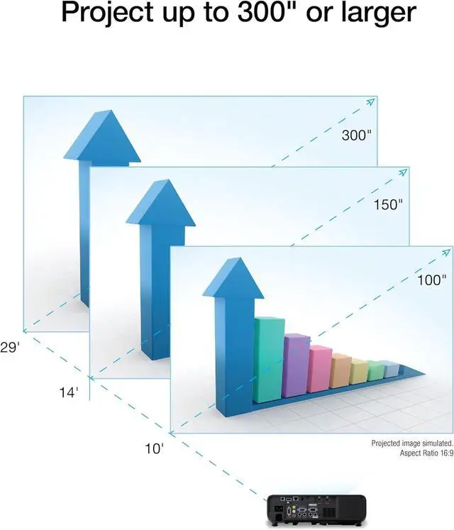 Display stunning life-sized images up to 300" featuring a 1080p picture 16 times larger than a 75" flat panel, you can simultaneously display meeting participants and your content in striking clarity during virtual meetings, video conferencing and business presentations