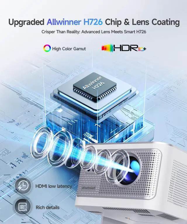 Smart Android 14 & Built-in EntertainmentPowered by an Allwinner H726 quad-core processor, 2GB RAM, and 16GB storage, this Android 14 projector ensures smooth multitasking and enhanced graphics for apps and gaming. Enjoy instant streaming with pre-loaded apps like YouTube and Prime Videono extra devices needed
