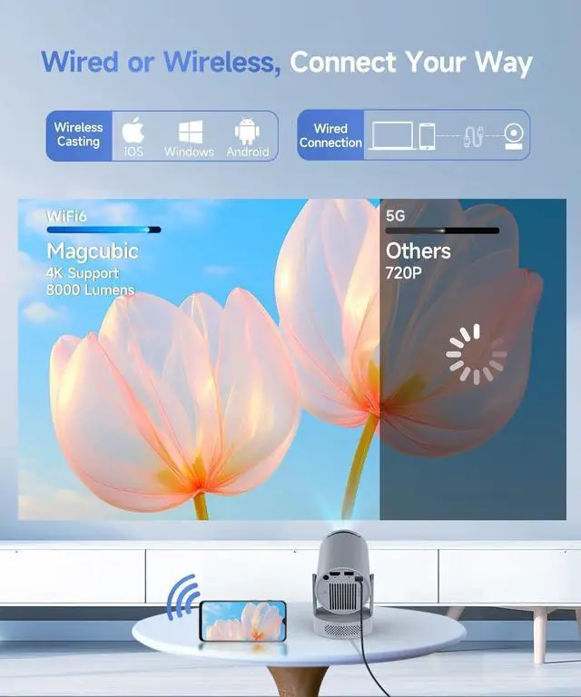 Clarity for Casual Use: Enjoy native 720P resolution with 4K support, suitable for casual use in your bedroom, outdoor, or living room. This portable projector is an affordable option for creating a basic home cinema experience.