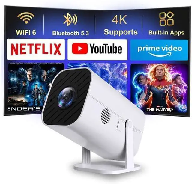 The Latest WIFI 6 Technology And Bluetooth 5.3This projector with Wi-Fi and Bluetooth is equipped with the latest Wi-Fi 6 technology, compatible with Wi-Fi 6, 5G and 2.4G, offering faster connection speed and stronger stability, eliminating buffering and disconnection issues, and ensuring smoother online content playback. Additionally, it is fitted with the latest Bluetooth 5.3 chip, allowing for easy connection to Bluetooth speakers, headphones or other Bluetooth audio devices, providing a more efficient and stable transmission channel, and enabling users to enjoy higher audio quality with ease