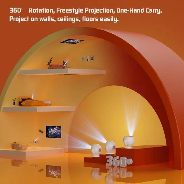 360° Rotation + Auto Keystone for Family FunXBJ mini projector. Project on walls/ceilings with 360° rotationno need to move the projector! Auto keystone correction fixes angles instantly, perfect for bedtime stories in kids rooms or movie nights in the living room. Ideal for parents to create a cozy family theater. Great for cozy tent nights.