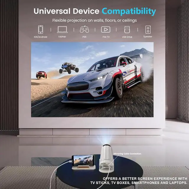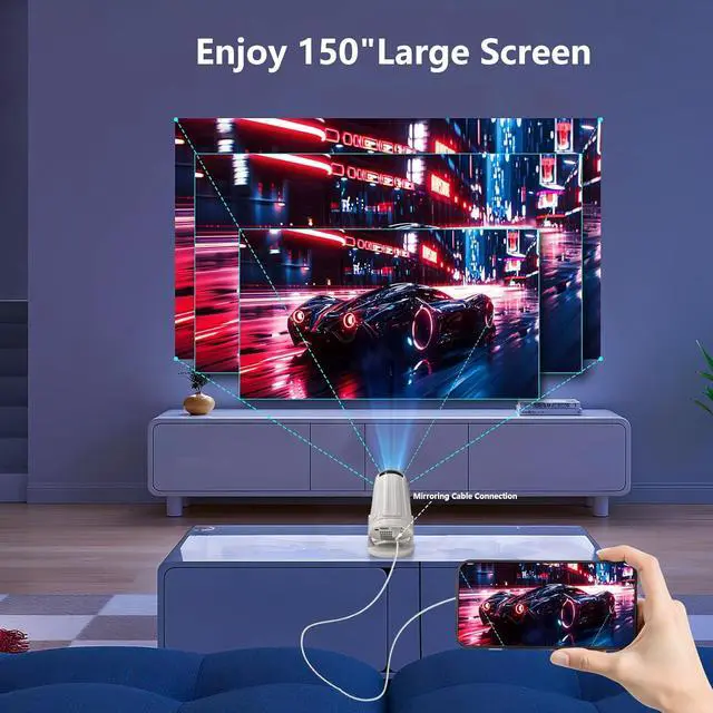 Smart Streaming + 5G WiFi 6 for XBJ small projector. Stream via Android system with lag-free WiFi 6! Compact design fits on dorm desks, and Bluetooth 6.0 connects to speakers for epic game nights. For college students,it is great for transforming rooms into entertainment hubs.