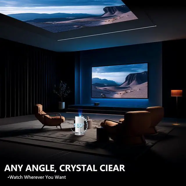 360° Rotation + Auto Keystone for Family FunXBJ mini projector. Project on walls/ceilings with 360° rotationno need to move the projector! Auto keystone correction fixes angles instantly, perfect for bedtime stories in kids rooms or movie nights in the living room. Ideal for parents to create a cozy family theater. Great for cozy tent nights.