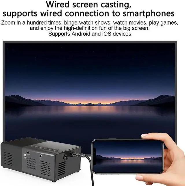 Mini ProjectionBring good visual effects. With advanced LED technology, the projection image is bright and lifelike. With a 1500:1 contrast ratio, this projector delivers stunning visuals that ensure crisp details and vibrant colors.