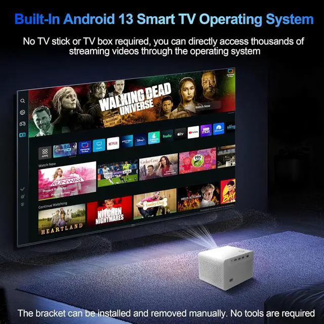 Built-in Android 13 Smart TV OS This smart home theater projector is preloaded with an app store, granting direct access to thousands of popular streaming apps (Hulu, YouTube, etc.). No extra TV stick neededsaving you both money and hassle while letting you stream your favorite shows, movies, and videos effortlessly. Build up your own home media center for non-stop movie marathons, and share joyful home theater moments with family and friends during gatherings to cherish beautiful memories