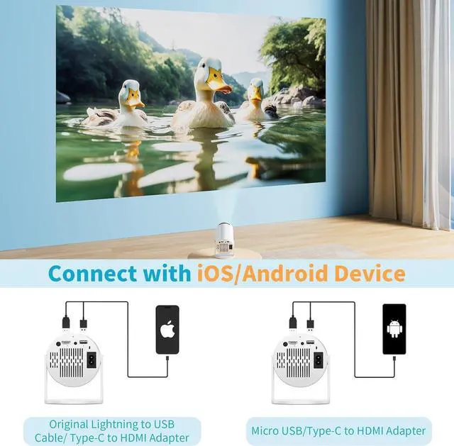 Stable Wired Synchronizing ProjectorEquipped with HDMI/USB/AUX ports, this projector seamlessly connects to phones, tablets, laptops, video games, TV sticks, and more. Stream horror classics , spooky cartoons , or Halloween party playlists without lag .