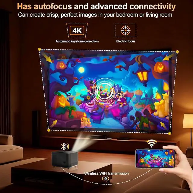 Seamless WiFi & Bluetooth Connectivity: Enjoy the convenience of a projector with WiFi and Bluetooth capabilities, allowing you to connect effortlessly to your devices. Stream content from popular platforms like YouTube with the integrated Android 13 operating system.
