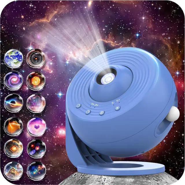 Galaxy Projector for Bedroom Pro Version, Upgraded Film Disc Star Projector for Kid 12 in 1 Planetarium Projector HD Image Adjustable Knob 360° Rotating 1/2h Timer Simple 4-Button Control