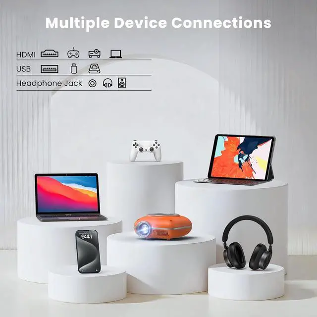 Efficient Connectivity: This mini projector includes USB 2.0 and HDMI 2.0 ports for seamless connections with smartphones, TV sticks, PS4, PS5, tablets, and laptops. It's ideal for home theaters, gaming, parties, or outdoor fun with the whole family