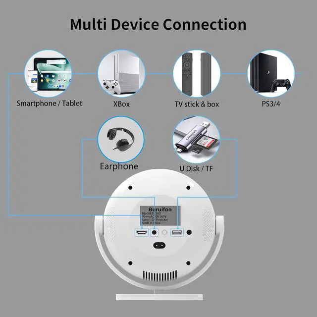 Portable & Flexible Setup: Weighing only 2.5lbs, it's highly portable. Offers versatile placement: ceiling mount, tabletop, tripod, or even 180-degree rotation for projection on any surface. The cute spherical design is also suitable as a gift for children