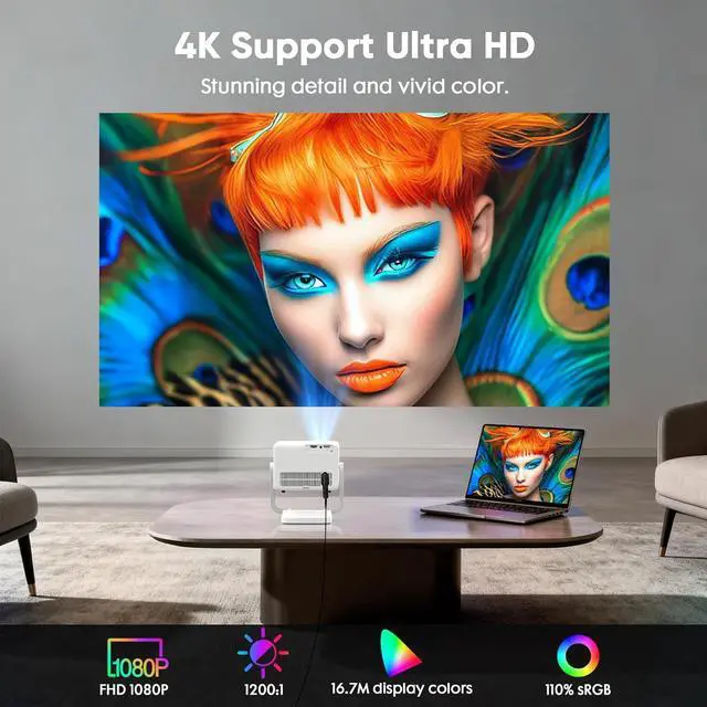 Native FHD 1080P Resolution & 4K SupportUtilizing advanced LCD technology, this 4K projector features native 1080P resolution and 4K decoding. In addition, we have upgraded the movie projector, significantly enhancing image brightness and contrast to suit various viewing scenarios. The 6-layer coated lens ensures sharp, true-to-life images, delivering an immersive HD experience that also helps reduce eye strain.