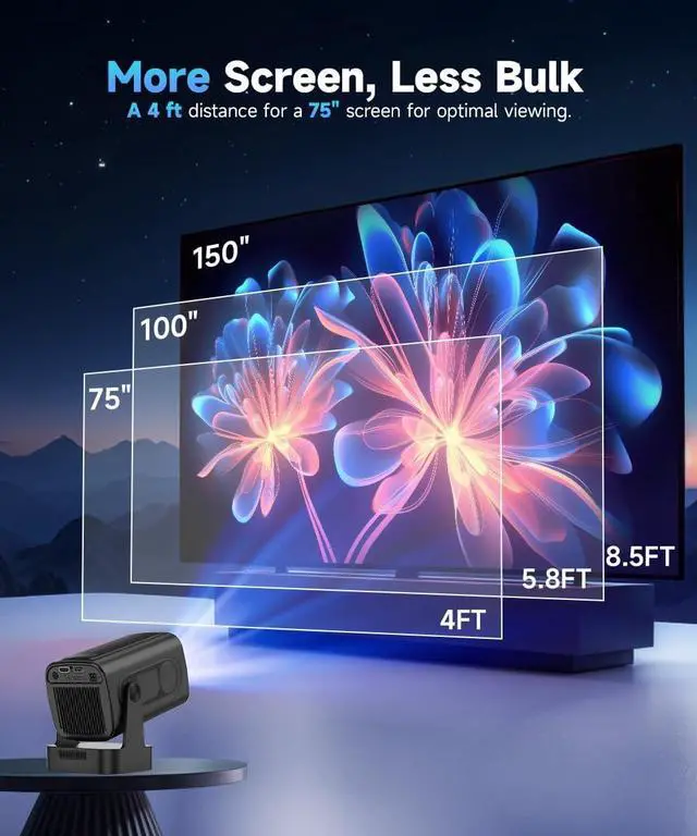 Built-in Multiple Apps: This smart projector offers seamless access to 1,000,000 videos with a single click, eliminating the need for an external TV stick. Dive into endless entertainment with one device, ideal for home theater or portable use