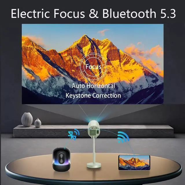 Lag-Free Streaming Powerhouse : Stronger WiFi & Bluetooth 5.3: Experience super-smooth streaming and mirroring without annoying hiccups! This projectors powerful dual-band WiFi (5 GHz + 2.4 GHz) handles your HD movies and shows with seriously faster speeds and rock-solid stability cutting through interference for truly seamless playback. Plus, the latest Bluetooth 5.3 tech makes pairing with AirPods, wireless headphones, or powerful Bluetooth speakers instant and effortless, wrapping you in rich, private theater sound that lets you go big without disturbing the house.