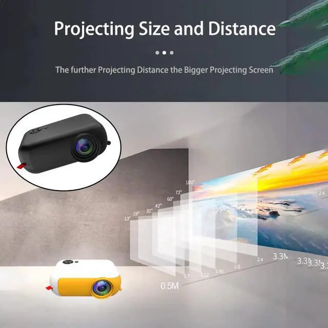 Mini projector, a must-have product for children to watch cartoons and videos, very popular with children, when viewed from a distance with a projector, Projection Size Range: 13-100 inches.