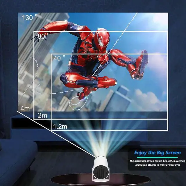 Native 1080P Full HD ResolutionThe smart projector features a native 720P resolution (1280x720) with 1080P Full HD support. Advanced LED and uniform lighting technology is used to make the projection edges brighter and clearer. The projector reproduces more complex color details than other pico projectors, providing customers with dynamic and colorful 1080P HD projection image quality.