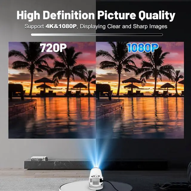 The movie projector provides 40-130 inch projection screen with an optimal projection distance of 5.51 feet. Supporting 4K 1080P, the automatic horizontal keystone correction function provides you the best screen position.