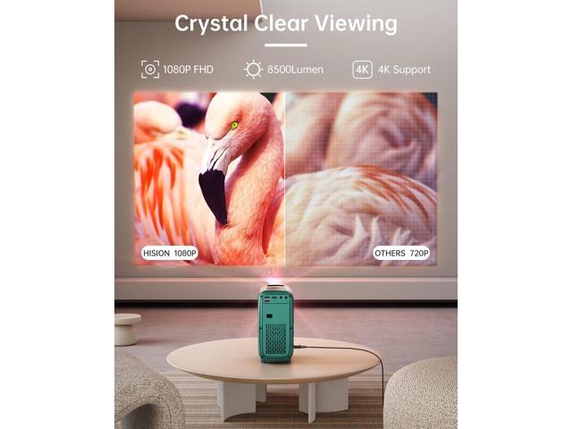 - 1080P Movie Projector 4K Support Introducing 2023 New Mini Movie Projector! Take an excellent 1080P resolution, 4K compatibility, high 8500Lumens, and a HIFI built-in 5W power speaker, Hision LED projector paired with impressive brightness and vivid color. Bring home theater experience right into your indoor living room or outdoor backyard with Hision home projector. Elegant and compact design, good ideas for Christmas, birthdays, anniversaries, or holiday gifts.