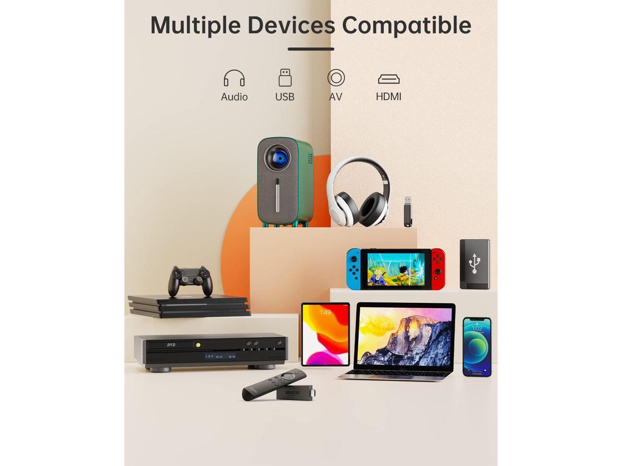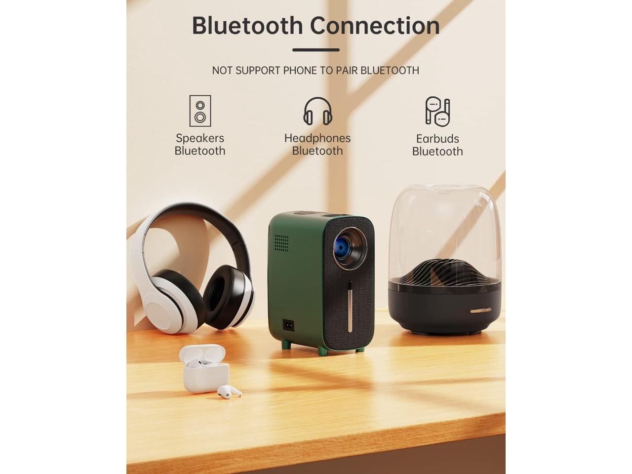 - Bluetooth Projector, 5W Stereo Speaker With a Built-in 5W high power speaker, adjustable screen of up to 200", you can host an amazing indoor or outdoor movie night with your friends and family with this small video projector. Enjoy superb audio along with crisp visuals.Furthermore, this Bluetooth projector comes with an advanced Bluetooth 5.0 chip, allowing you to connect the home theater projector with different Bluetooth speakers and headphones to enhance the sound experience.