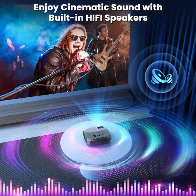 High-Quality Sound ProjectorBuilt-in HiFi stereo speakers for great stereo surround, this home theater projector with speaker is the best choice for indoor and outdoor use. More important, the FUDONI Bluetooth projector with 5.1 Bluetooth allows you to easily connect your ideal soundbar, headphone, or other audio equipment.
