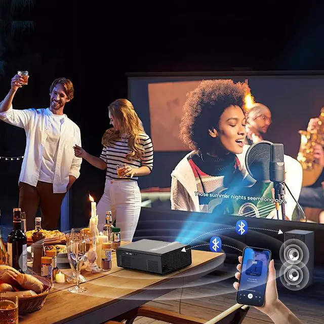Ultra-fast WIFI6 ConnectionHome theater projector has WiFi wireless connectivity. 5G+2.4G dual-band WiFi technology, capable of receiving WiFi signals from 2 frequencies at the same time, provides greater flexibility and smoother, faster transmissions. So you can enjoy screen mirroring, movie and and gaming with your mobile devices. Easily project content from smartphones, tablets and other devices onto the big screen. Whether it's an HD movie or an office presentation, and instantly synchronize it.