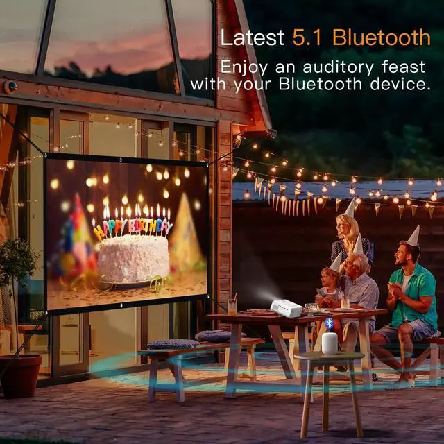 [Projector with 5G WiFi & Bluetooth 5.1 ]: Our WiFi projector supports 5GHz& 2.4GH z dual-band WiFi. 5G WiFi means higher wireless rates - guarantees no lagging and offers smoother and faster experience while gaming or online video streaming. VOPLLS bluetooth projector is featured with Hi-Fi stereo speakers and Bluetooth 5.1 function, which not only provides original audio fidelity with crystal clear sound quality, but allows you to connect it to Bluetooth headsets/speakers.
