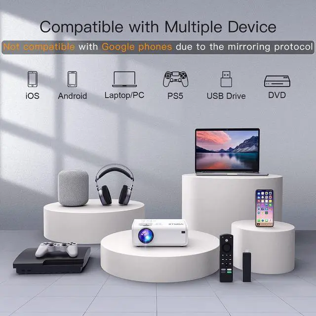 [Multimedia Connection & Presentation via USB]: Equipped with HDMI, AV, and double USB interfaces, VOPLLS movie projector works perfectly with TV Boxes, USB Drive, Laptops, Smartphones, DVD Players, PS5, External Speakers, etc. VOPLLS home projector can play PPT, EXCEL, and WORD from a USB drive or laptop in a slightly dim environment. Due to copyright of Apps, Netflix, Prime Video, Hulu, etc. can only be played via TV Stick, Roku, etc. Please purchase a TV Stick to play if you need.