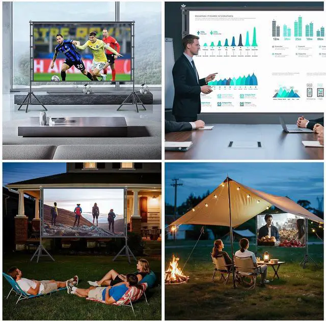 Wide Applications: The movie projector screen is a great choice for home theater, backyard movie night, classroom training, conference room presentations, public displays, and camping. It is suitable for outdoor and indoor projector screen with your family and friends, bringing you much enjoyment and convenience. Moreover, the pantalla para proyector can also serve as a thoughtful gift for family, friends, or loved ones.