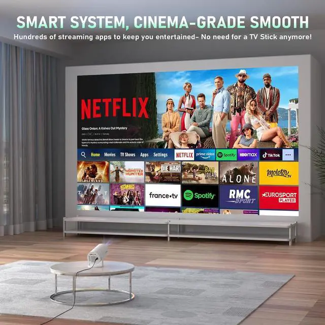 [Official Netflix & Smart OS] XuanPad projector offers seamless access to over 1, 000, 000 videos from certified apps like Netflix, allowing you to enjoy your favorite shows and movies. Say goodbye to lag, stuttering and unexpected crashesour smart projector stands apart. Powered by an upgraded Smart OS with intelligent background maintenance, automatic updates, and performance optimization, it delivers a buttery-smooth, hassle-free experience like never before.