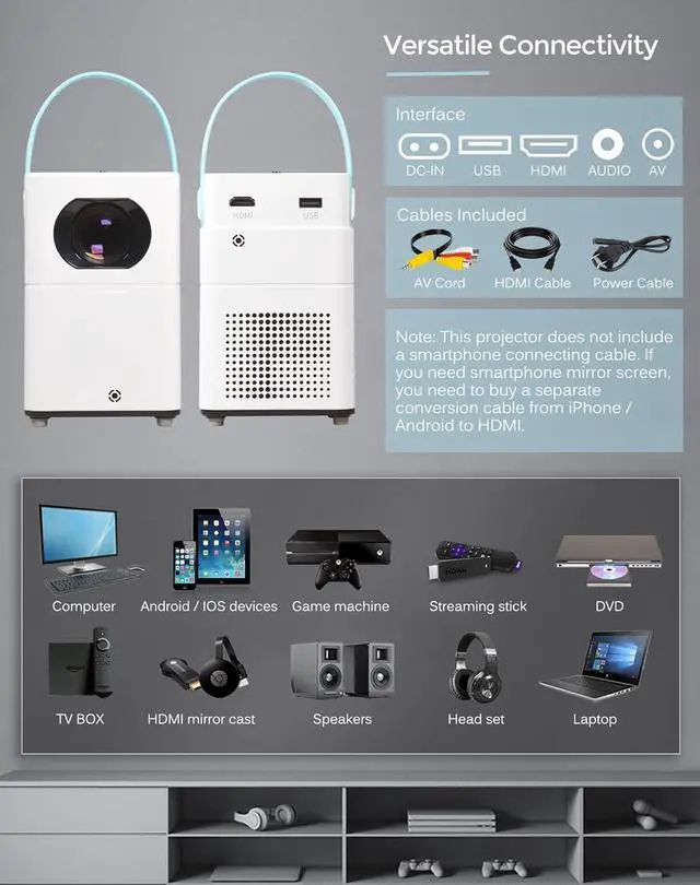 You need to buy an adapter or conversion cable that meet with your smartphone interface, for example if it is a Android phone with USB C interface, then need to buy a USB C to HDMI cable, connecting to the projector with this USB C to HDMI cable.