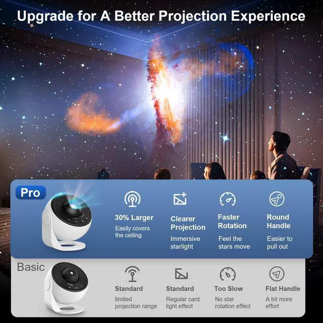 Planetarium Projector Pro 2025- Doubling previous brightness with 30% wider projection, this galaxy projector for bedroom now immerses entire walls or ceilings in razor-sharp HD stars. Experience twice the luminosity for vivid constellations and enhanced nebula details, paired with smoother galaxy rotations that mirror natural celestial movements - perfect for creating awe-inspiring space environments in bedrooms. Night light projector maintains whisper-quiet operation while projecting quality cosmic displays, making it ideal for astronomy enthusiasts and relaxation seekers alike. As an ambient light, this also makes a unique and thoughtful mothers day gifts for mom!