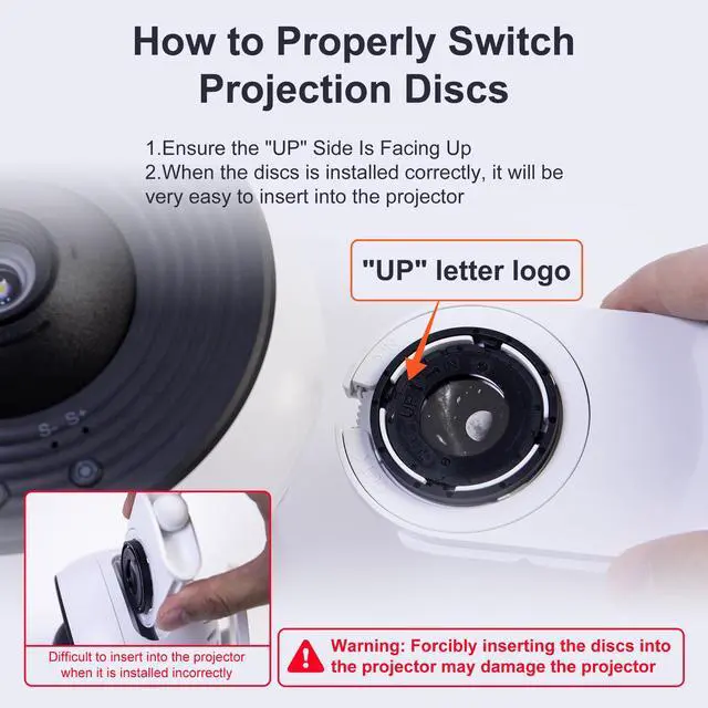 13 IN 1 Nebula Projector - Star projector galaxy light comes with 13 display scenarios: Solar System, Earth, Moon, Virgo Supercluster, Centaurus A, Black Hole, Antennae Galaxies, Wormhole, the Milky Way, Mystic Mountain, Sharpless 2-308, Small Magellanic Cloud, and Laniakea Supercluster. Each projection card has an introduction to the galaxy, helping you know more about space. PLEASE MAKE SURE the "UP" letter faces upwards when installing. Note: 13 projection cards total, 1 pre-installed in the projector