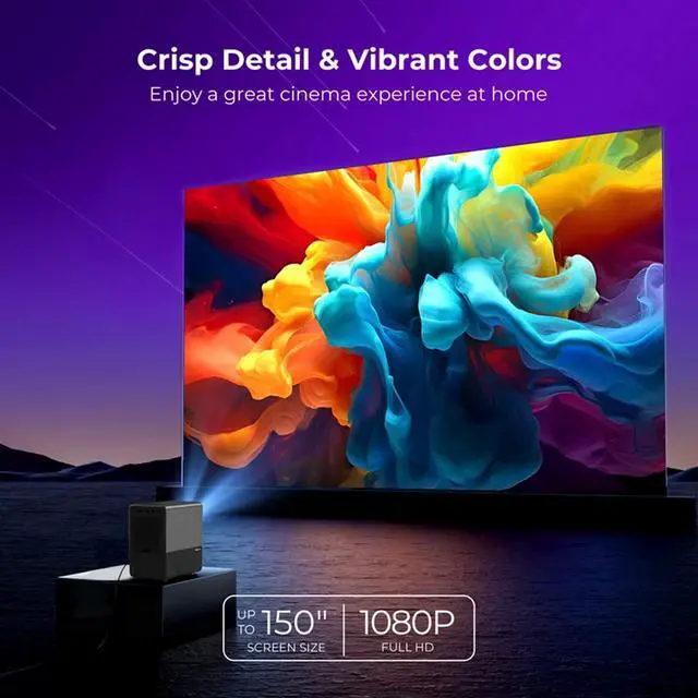 Massive 150" Display Immersive large-screen viewing for movies, gaming, and presentations.