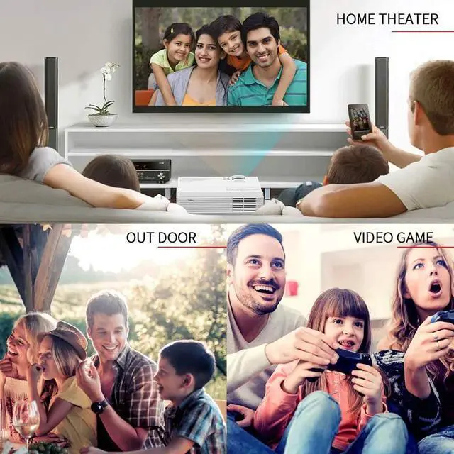 Bring massive-screen entertainment to your home with this 200-inch FHD 1080P LED projector. Featuring crisp 1920 x 1080 resolution, a 16:9 aspect ratio, and a high 5000:1 dynamic contrast ratio, it delivers detailed visuals for movies, gaming, and presentations. Designed for versatile use, it includes HDMI, USB, SD/TF, Mini VGA, composite, and a headphone jack, allowing easy connection to multiple devices. With multilingual OSD support and built-in speakers, this projector is ready for immersive viewing right out of the box.
