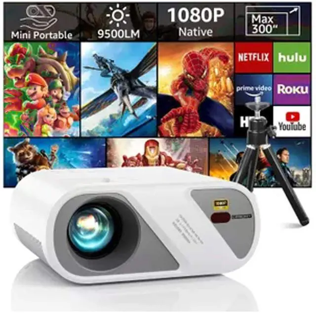 Bring the big screen home with the UBantor 300" Class FHD LED Projector, delivering stunning Full HD 1080p visuals on an enormous 300-inch diagonal display. The LED backlight ensures bright, vibrant images, while the 16:9 widescreen format makes movies, sports, and presentations immersive and clear. With built-in 3W speakers and a headphone jack, audio is flexible for personal or shared experiences. Easily connect laptops, media players, or streaming devices via HDMI or USB ports. The included tripod, HDMI cable, and AV cable allow quick setup for home, classroom, or office use. Lightweight and portable, this projector transforms any space into a true cinematic environment.