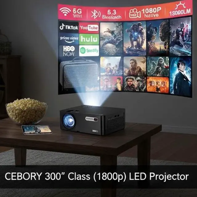 Transform your home or outdoor space into a cinematic experience with the Cebory 300" Class FHD LCD Projector. Featuring 1080p Full HD resolution and LED light source, this projector delivers sharp, vibrant visuals on a massive screen up to 300 inches. Dual built-in stereo speakers provide immersive sound while WiFi and Bluetooth connectivity allow seamless streaming from external devices. Electronic keystone correction and manual focus adjustment make setup quick and easy. Perfect for home cinema, outdoor movies, gaming, or professional presentations.