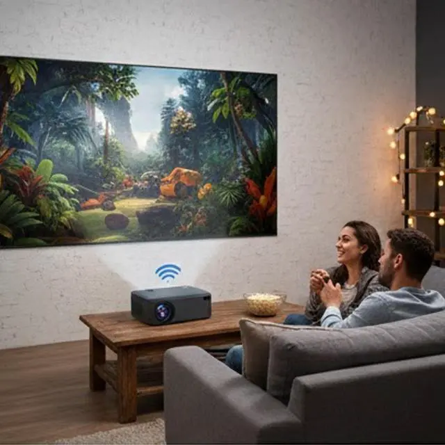 Enjoy stunning big-screen viewing with this 300" Full HD LED projector. Perfect for movies, gaming, presentations, or home theater setups, it features smart functionality, built-in WiFi, multiple connectivity options, and bright, clear visuals.