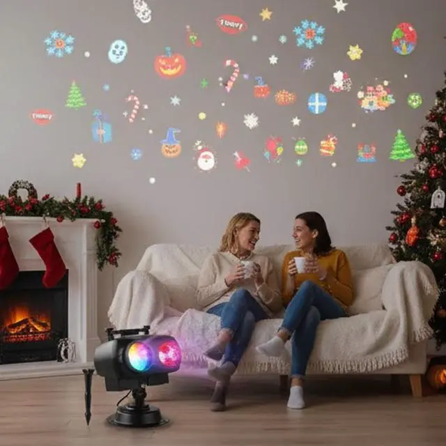 Create a festive and immersive holiday atmosphere with these dual projection holiday lights. Perfect for Halloween, Christmas, or seasonal decorations, the projector delivers vibrant 3D slides and colorful RGB wave ripple effects for both indoor and outdoor use.