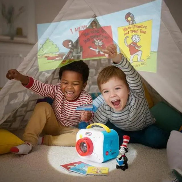 Make storytime magical with this Story Dream Machine Starter Pack. Projects vibrant images from three classic stories onto walls or ceilings, paired with engaging narration and sound effects. The included character figurine adds interactive light effects, while the white noise nightlight soothes children at bedtime. Easy-to-use controls let kids adjust volume, fast forward, or rewind, promoting independent storytime. Compact and portable, its perfect for home, travel, or quiet evenings.
