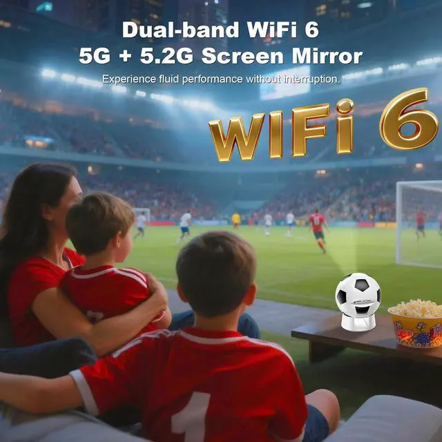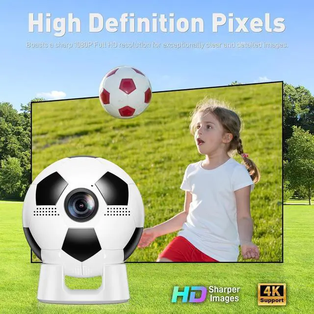 Smart Soccer-Designed Projector with Built-In OSBring stadium energy straight to your home theater with this uniquely designed soccer-ball-inspired smart projector. Powered by the latest Android 13 system, the smart projector offers a fully independent smart experienceno extra devices needed. Browse and download over 10,000 streaming apps. Access a massive library of 500,000+ movies and TV episodes anytime. Note: Please connect the remote via Bluetooth before using the projector