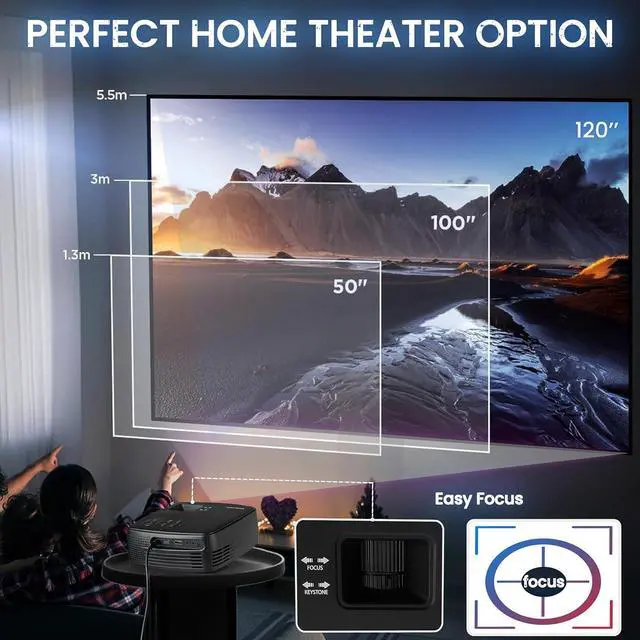 NATIVE HD RESOLUTION WITH VIBRANT VISUALS: Experience crisp and clear visuals with native resolution (1280x720), providing stunning picture quality for all your media. The projection size range from 30 to 140 allows you to adjust based on the size of the space, ensuring an optimal viewing experience whether you're in a small room or setting up for a large group of people