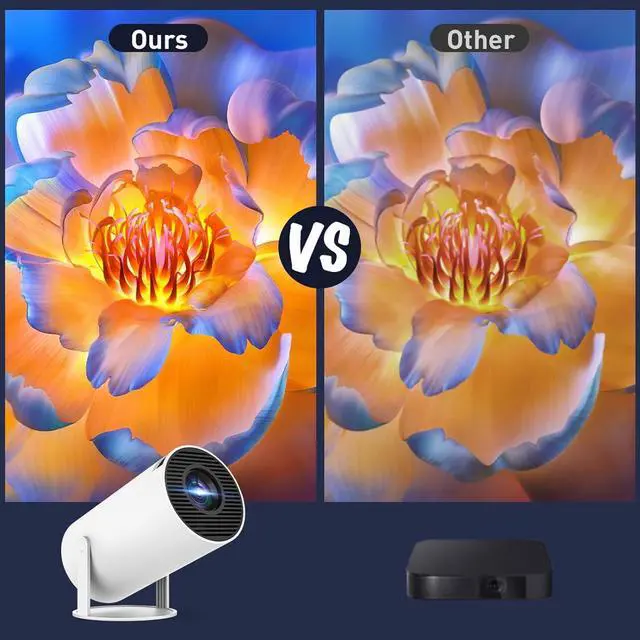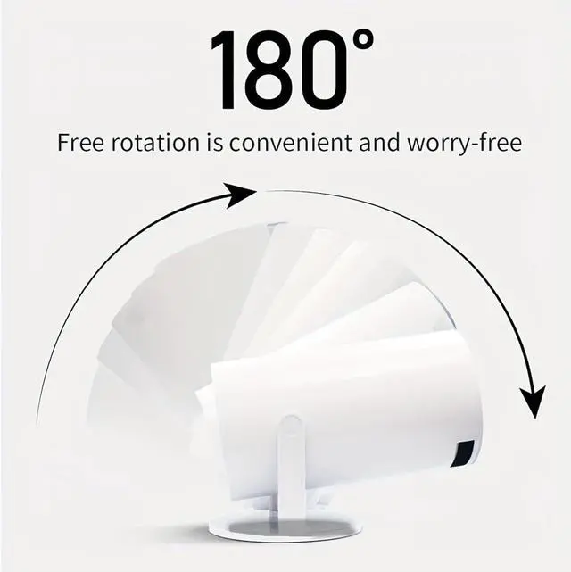 Built-in dual band WiFi 6 & 180°Rotatable Portable ProjectorIt doesn't require fixed installation, allows for flexible adjustment of projection angles,can project onto the ceiling, and is not constrained by the environment offers unparalleled versatility and convenience. Built-in dual band 5G Wifi 6, experience reduced latency and improved responsiveness, ideal for video conferencing, and other real-time applications, ensuring smoother, more immersive experiences without delays or lag.
