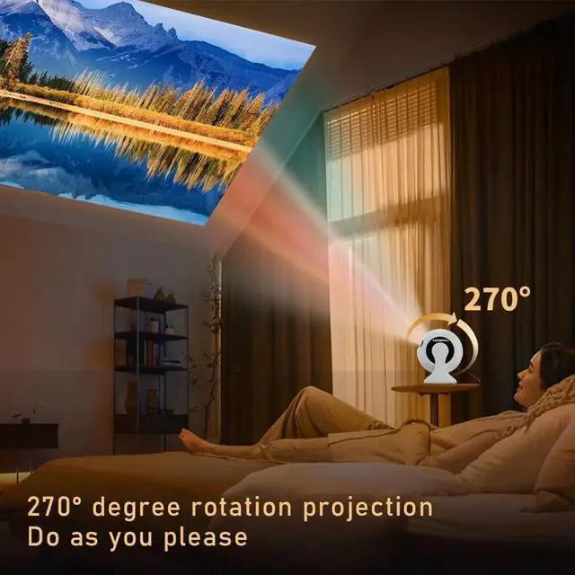 Dual Power Supply + 270° Adjustable StandUse wall power or a standard 12V/2A power bank (not included). Features a 270° rotatable stand for flexible projection anglesno extra stand needed. Enjoy large-screen entertainment anywhere