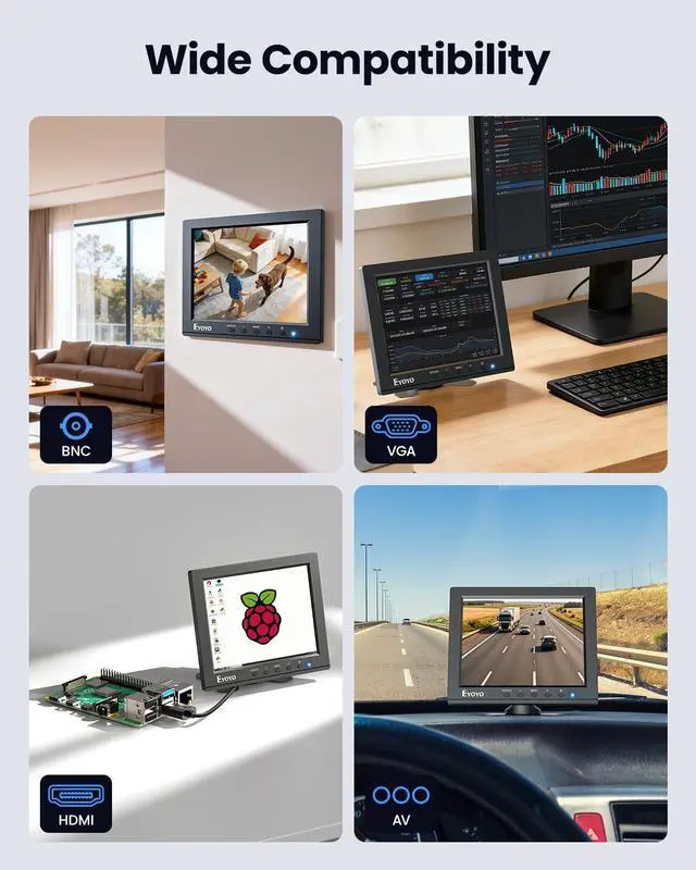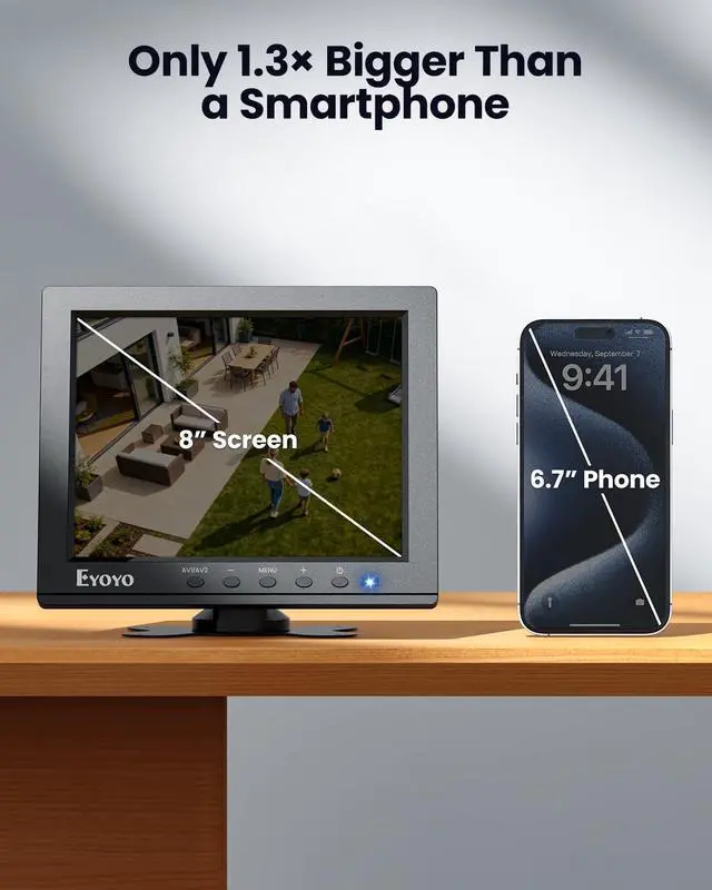 COMPACT & PORTABLE: The 8-inch monitor is just slightly larger than a smartphone, offering a space-saving design that delivers vibrant images and low power consumptionideal for tight spaces and energy-efficient use